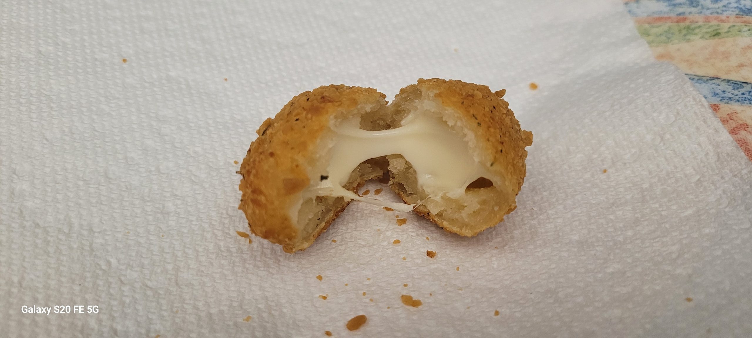 • Texture: They have a wonderful contrast: a crispy, golden-brown exterior thanks to being deep-fried and breaded, and a soft dough filled with gooey, melted cheese.